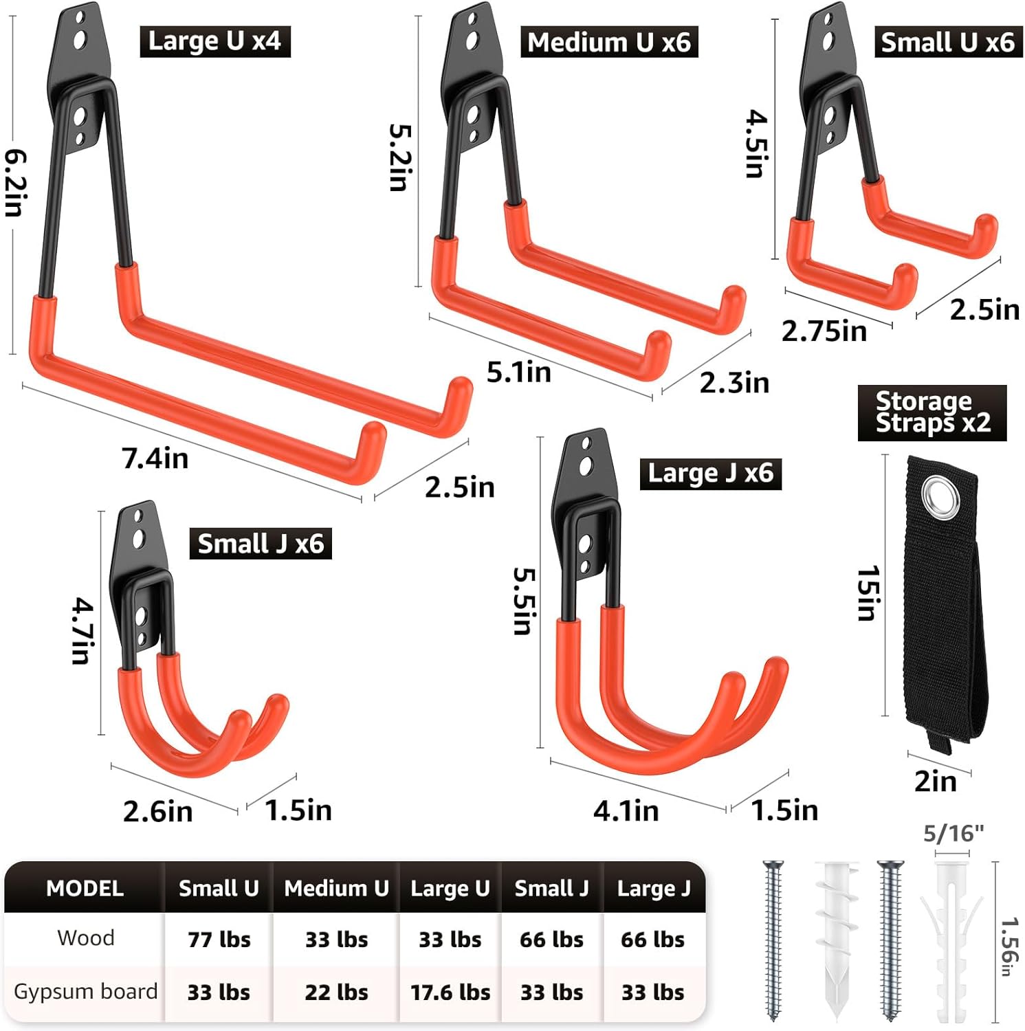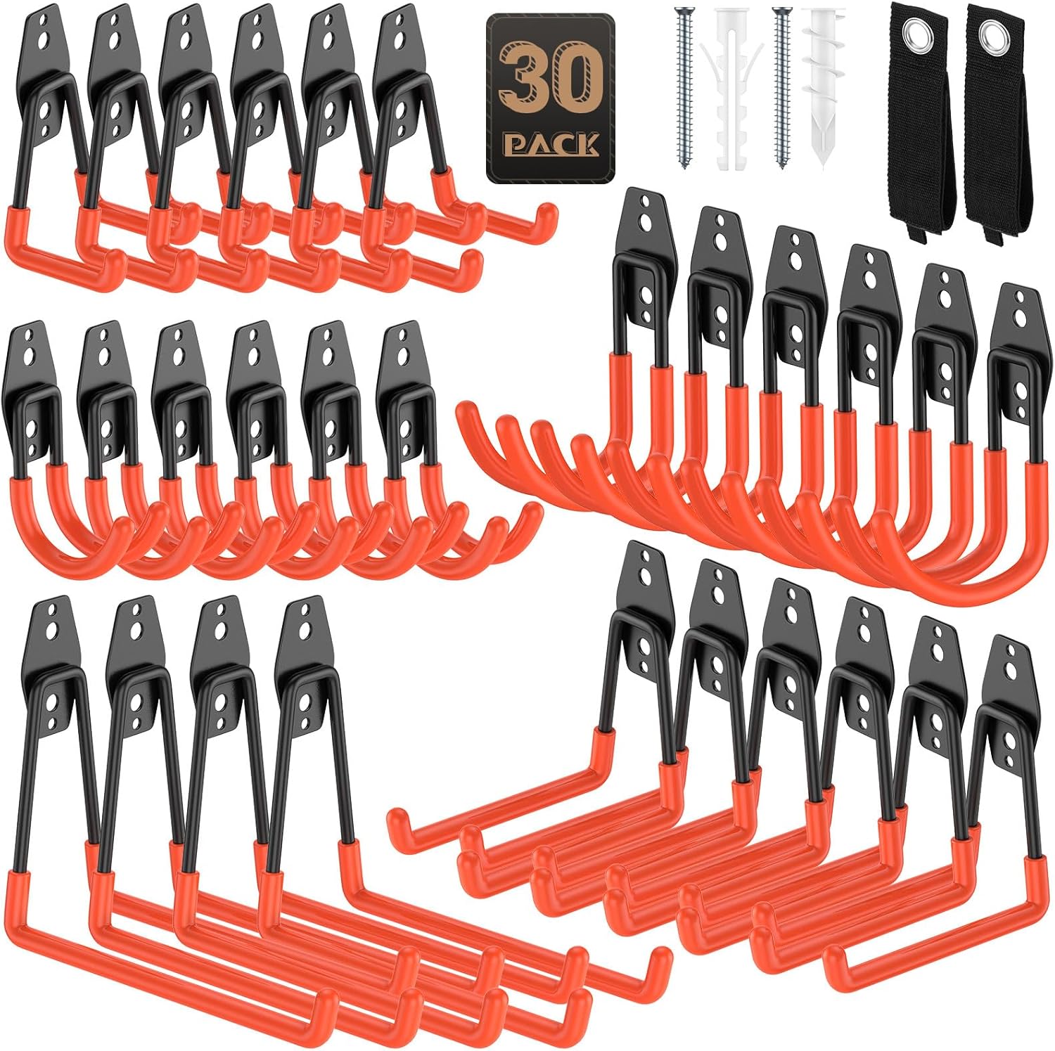 30 Pack Utility Steel Heavy Duty Wall Mount Garage Hooks,with Anti-Slip Coating,for Hanging Bikes,Ladder,Ropes,Bulk Items,Power,Yard and Garden Tools