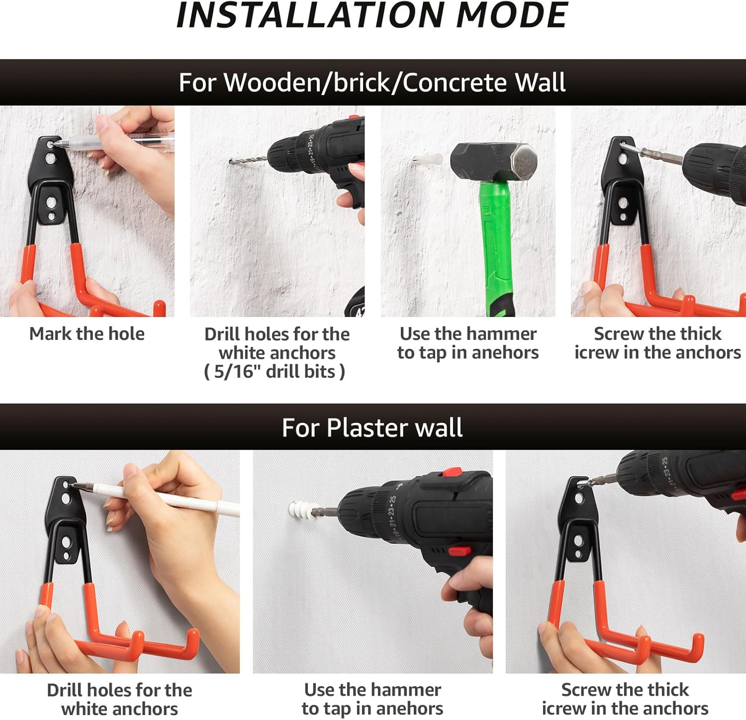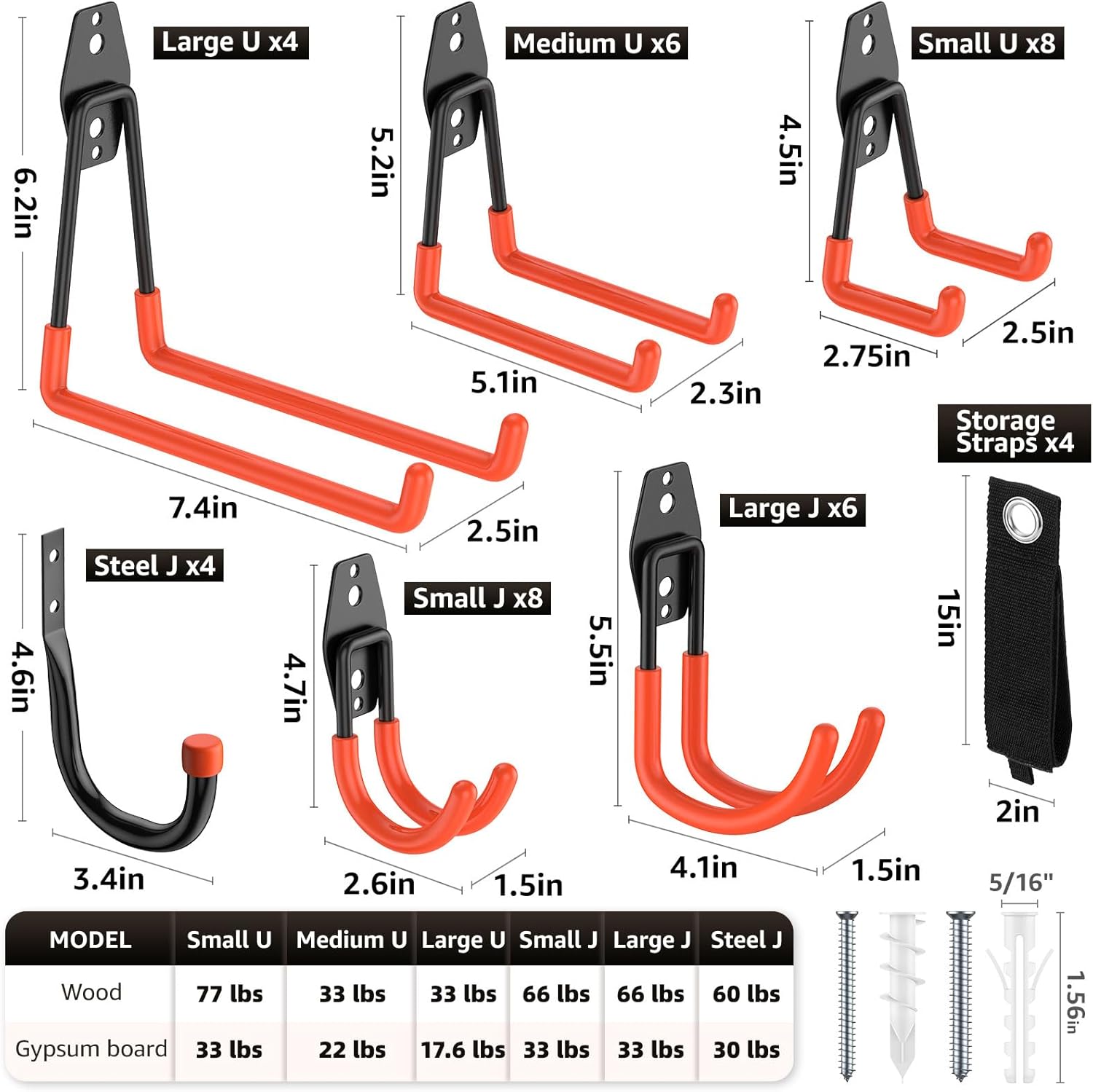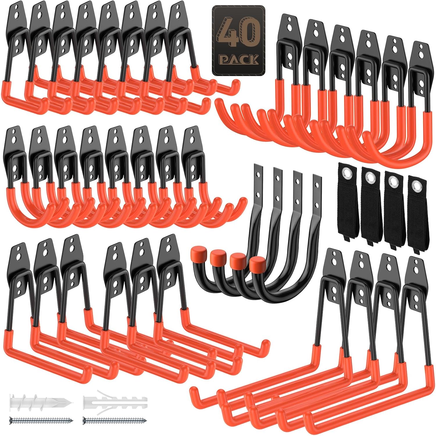 40 Pack Utility Steel Heavy Duty Wall Mount Garage Hooks,with Anti-Slip Coating,for Hanging Bikes,Ladder,Ropes,Bulk Items,Power,Yard and Garden Tools