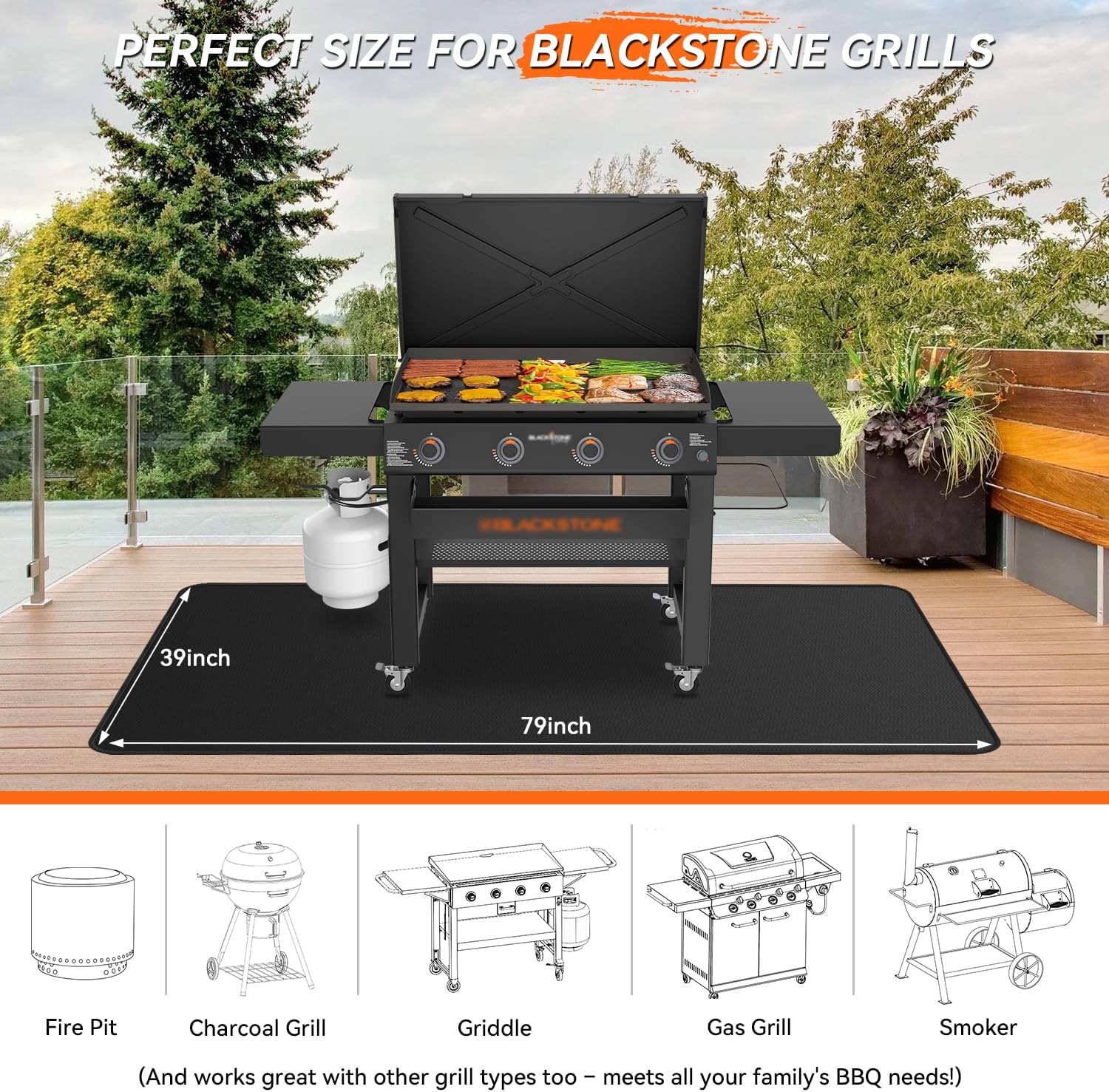79×39 inches Large Under Grill Mats for Blackstone, Double-Sided Fireproof Outdoor Grill Protective Mat, Oilproof Waterproof BBQ Fire Pit Fireplace Mat