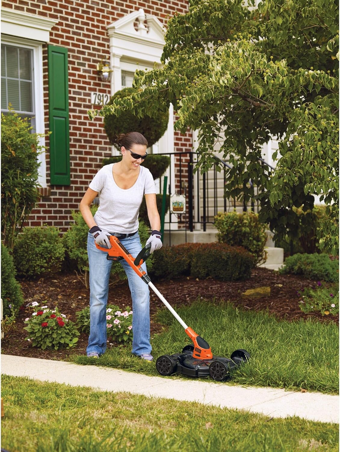 BLACK+DECKER Weed Eater, Lawn Edger and Cordless Lawn Mower 3 in 1 Combo, Includes (2) Batteries, Charger, 12 Inch Battery Powered String Trimmer and Lawnmower, Adjustable Length and Height (MTC220)
