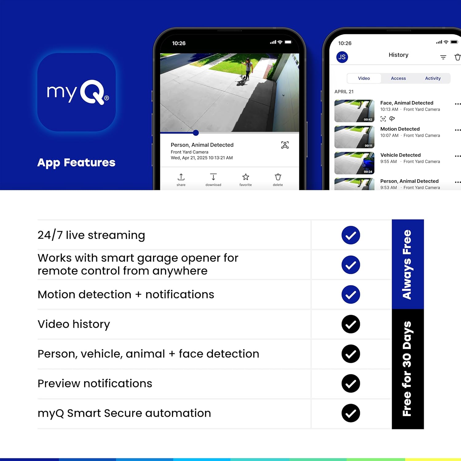 Chamberlain myQ Outdoor Battery Camera | 2K Camera, Color Night Vision, Spotlight, Motion Alerts, Live View with Two-Way Talk, Wireless, Weather-Resistant, Outdoor, White