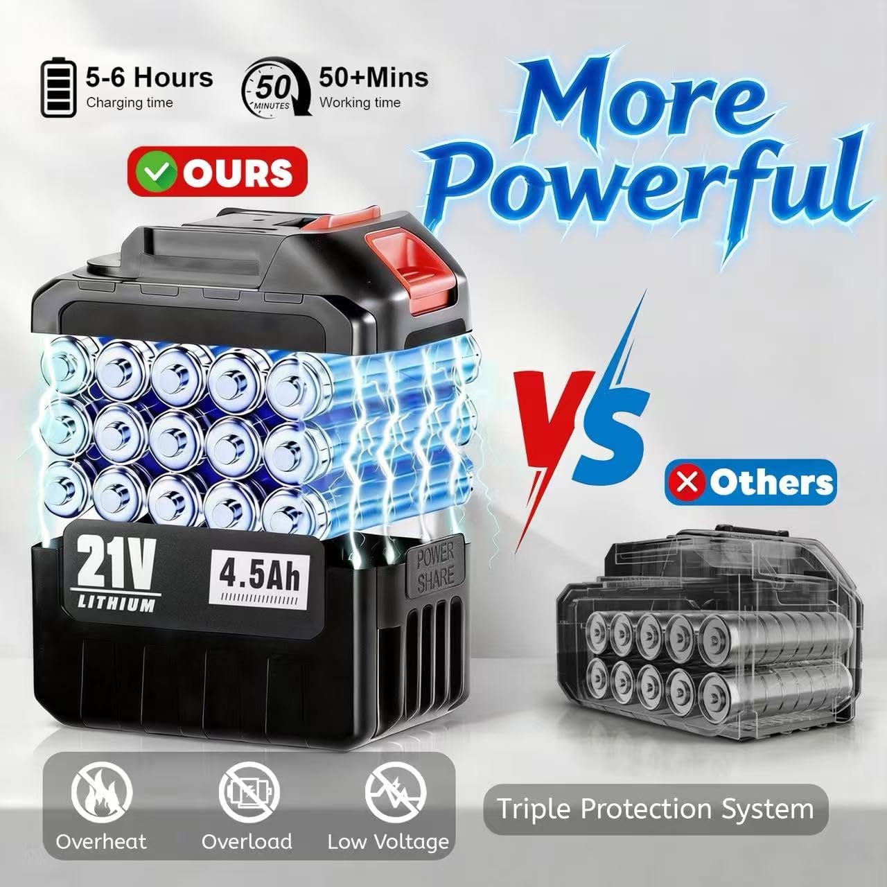 Cordless Pressure Washer Battery Powered,Portable Power Washer with 2pcs 4.5Ah 21V Battery&Charger & 6-in-1 Nozzle,2 Power Level & on/off Button,Handheld Pressure Washer for Car,Home,Garden Patio (5m)