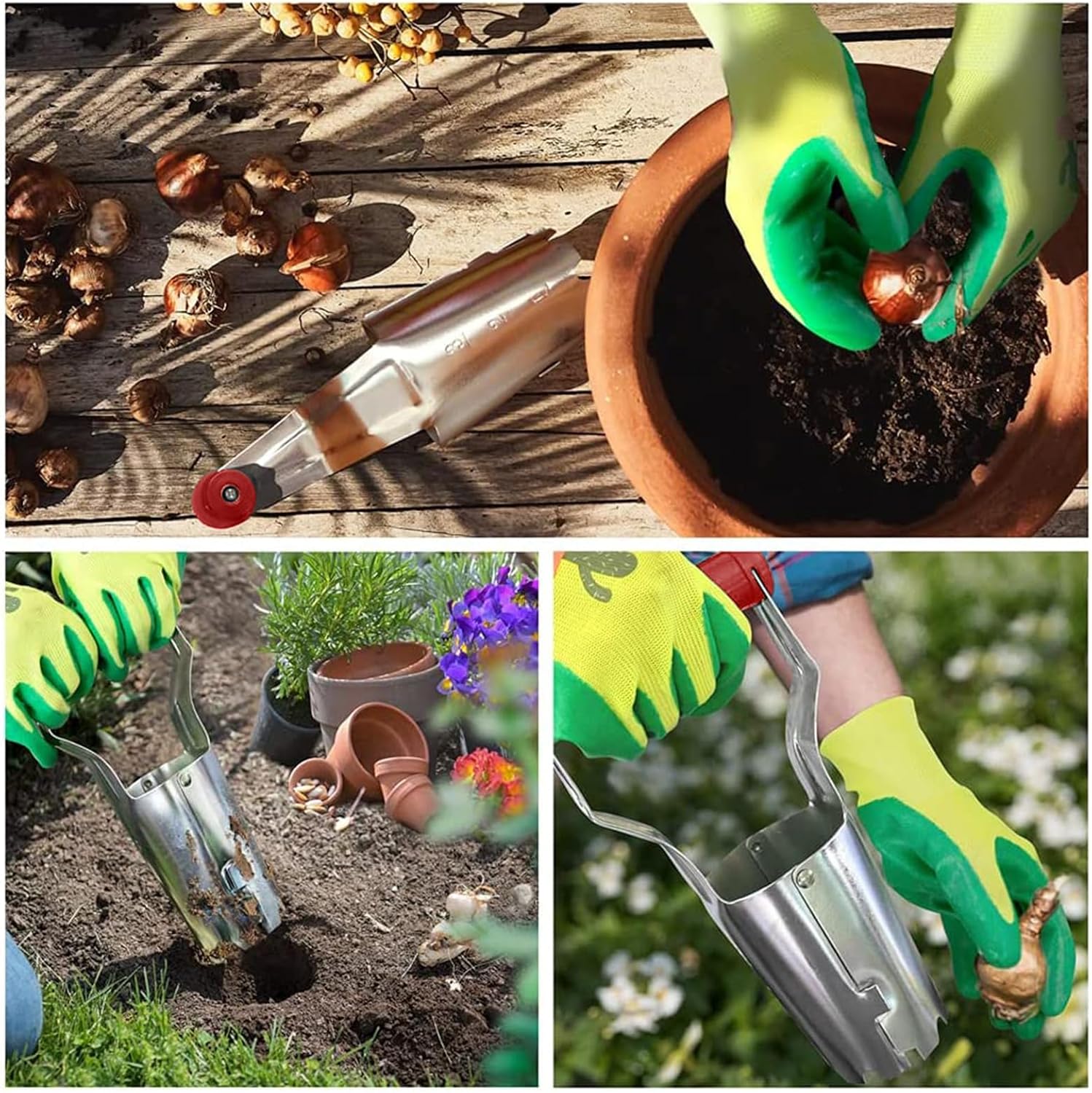 FLORA GUARD Bulb Planter with Depth Markers – Automatic Soil Releasing Seed Bulb Transplanter for Planting/Digging Tulips, Daffodils, Dahlias and More