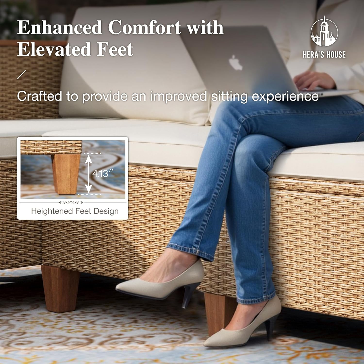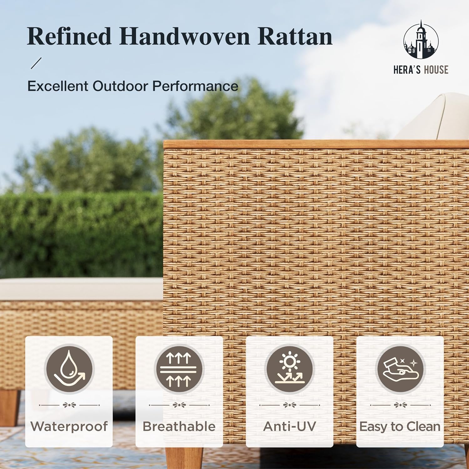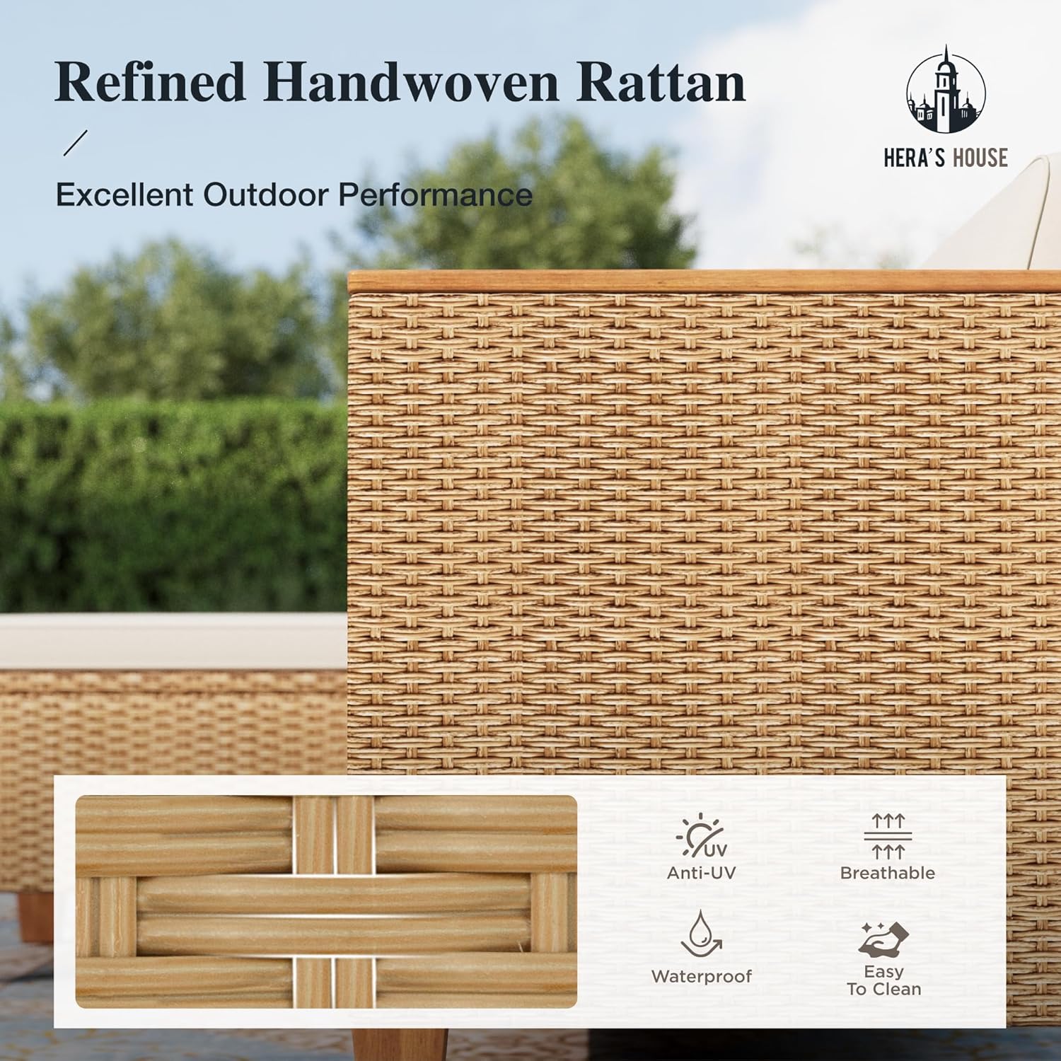 HERA’S HOUSE Small Patio Furniture Set, 3 Pieces Wicker Outdoor Sectional Sets,Yellow Rattan Conversation Set with Sofa and Coffee Table for Garden and Backyard, l Shape Boho Balcony Couch Sets