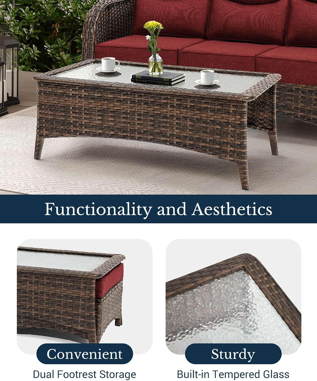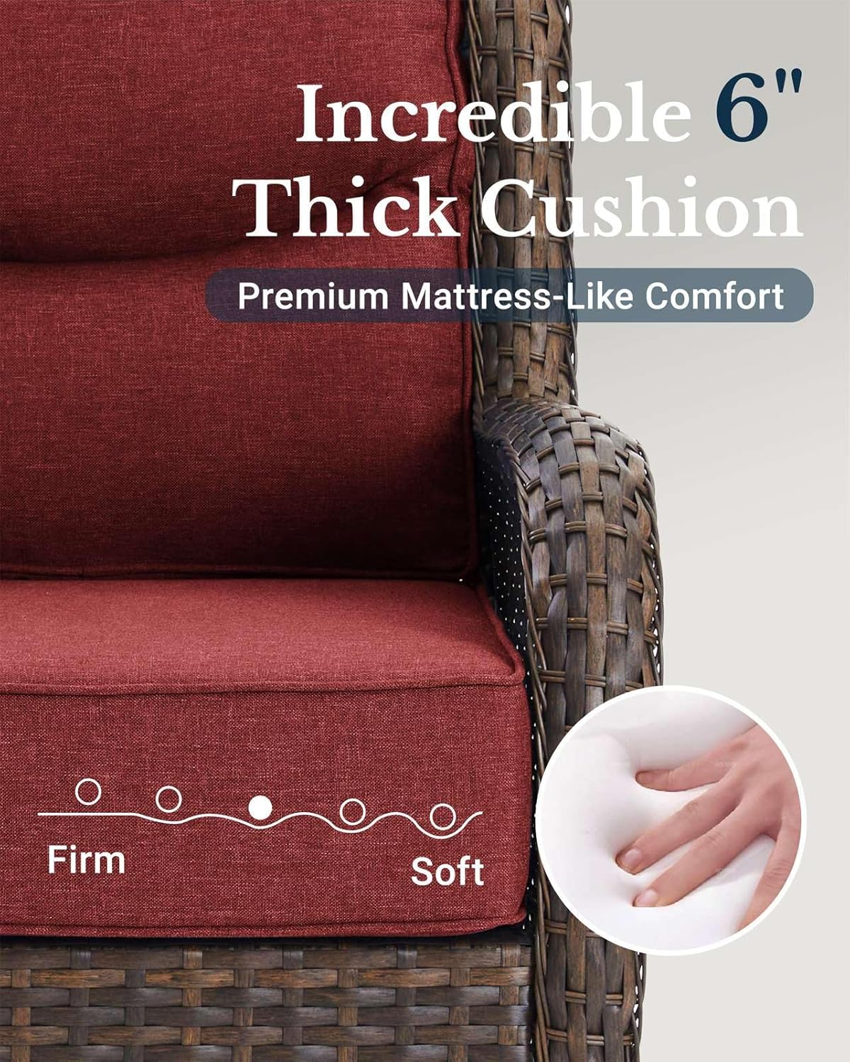 HILLGA Luxury Patio Furniture Set with 6-inch Thick Cushion, Outdoor Couch and High Back Swivel Rocker Patio Chairs, 10PCS Wicker Conversation Set for Deck Yard and Poolside, Burgundy (V2)