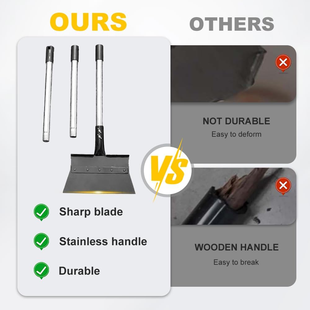 Ice Scraper Heavy Duty, 2026 New Snow Shovel, 11″ Wider Garden Flat Floor Scraper with 48″ Long Adjustable Handle, Multifunctional Floor Scraper for Snow Ice, Weed Removal, Garden (1)