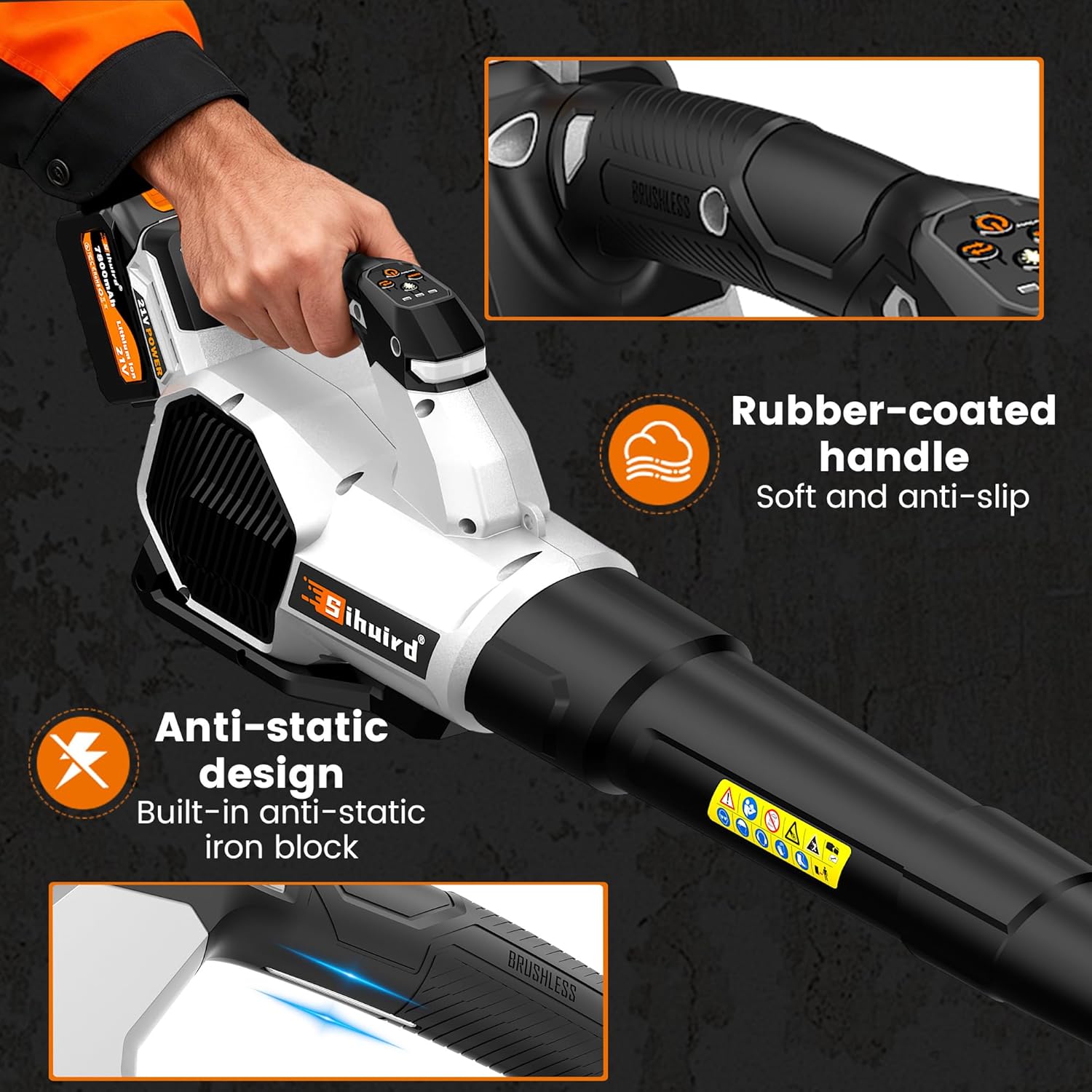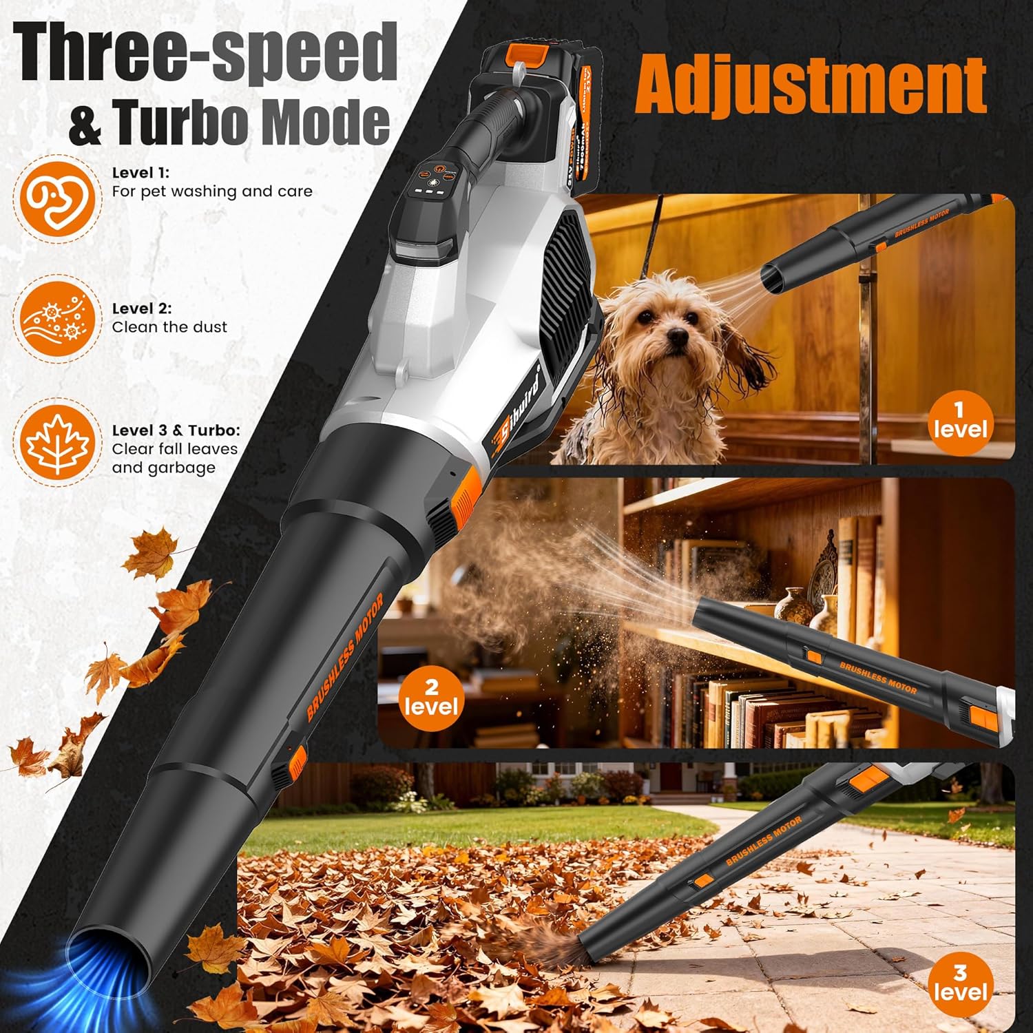 Leaf Blower Cordless, 765CFM Electric Leaf Blowers with 2 x 7.8Ah Batteries and Charger, 3- Speed & Turbo Mode, Equipped with LED Lighting, 1 x Shoulder Strap, Blowers for Lawn Care – SL9501