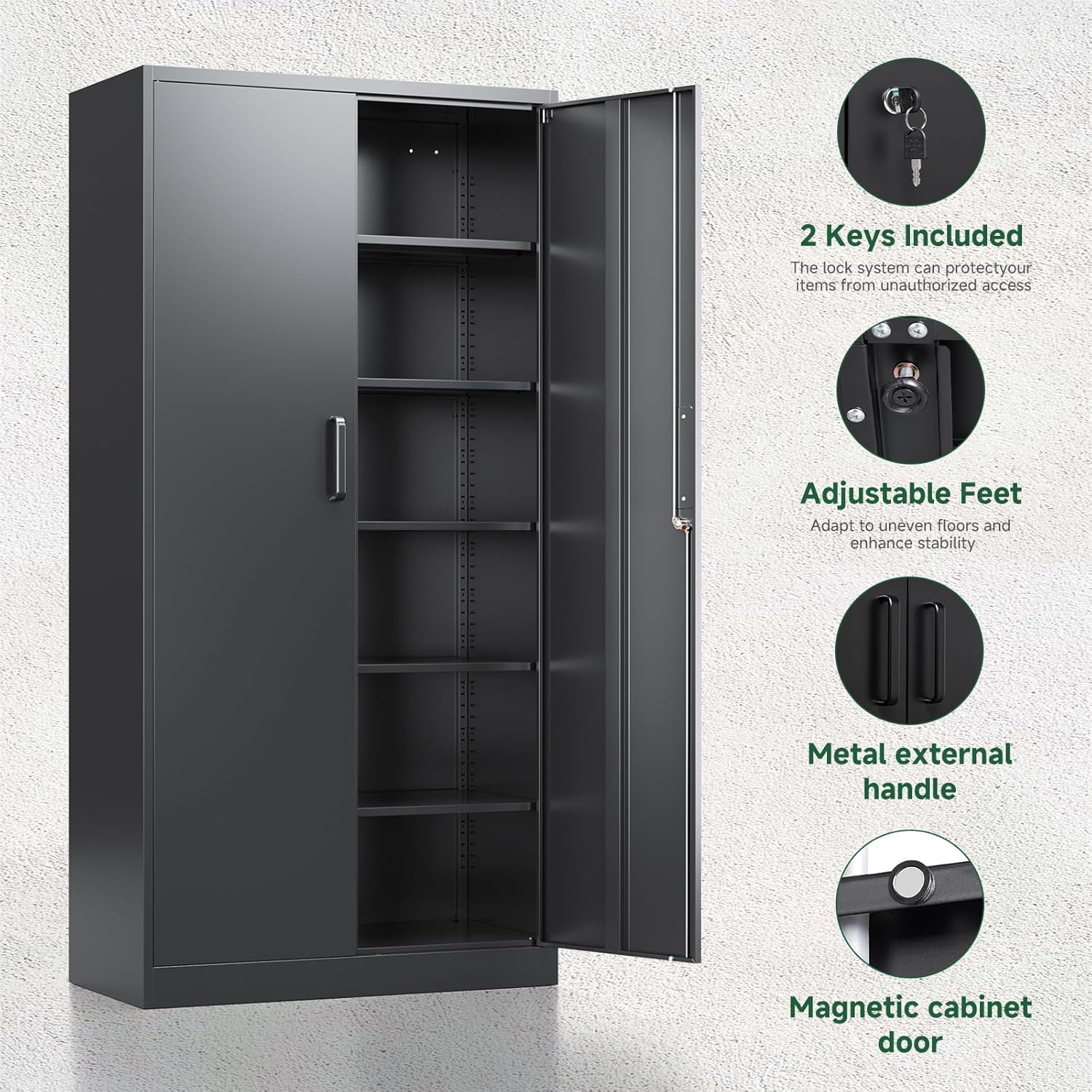 Letaya Metal Garage Storage Cabinets with Lock-72 Tall Tool Organizer Steel Lockers, 5 Adjustable Layers Shelves for Home,Office,Warehouse,Garage,(Black-72“) | with Lock, 72 Tall, Tool Organizer