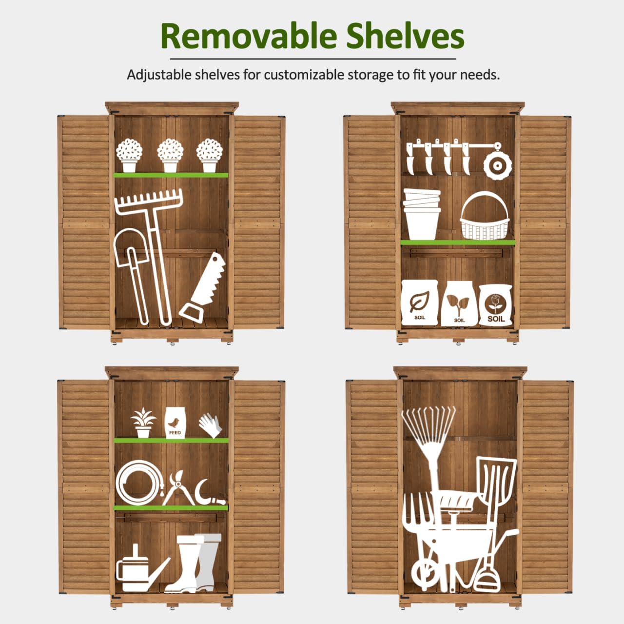 MCombo Outdoor Storage Cabinet, Garden Storage Shed, Outside Vertical Shed with Lockers, Outdoor 63 Inches Wood Tall Cabinet for Yard and Patio 0870 (Natural)