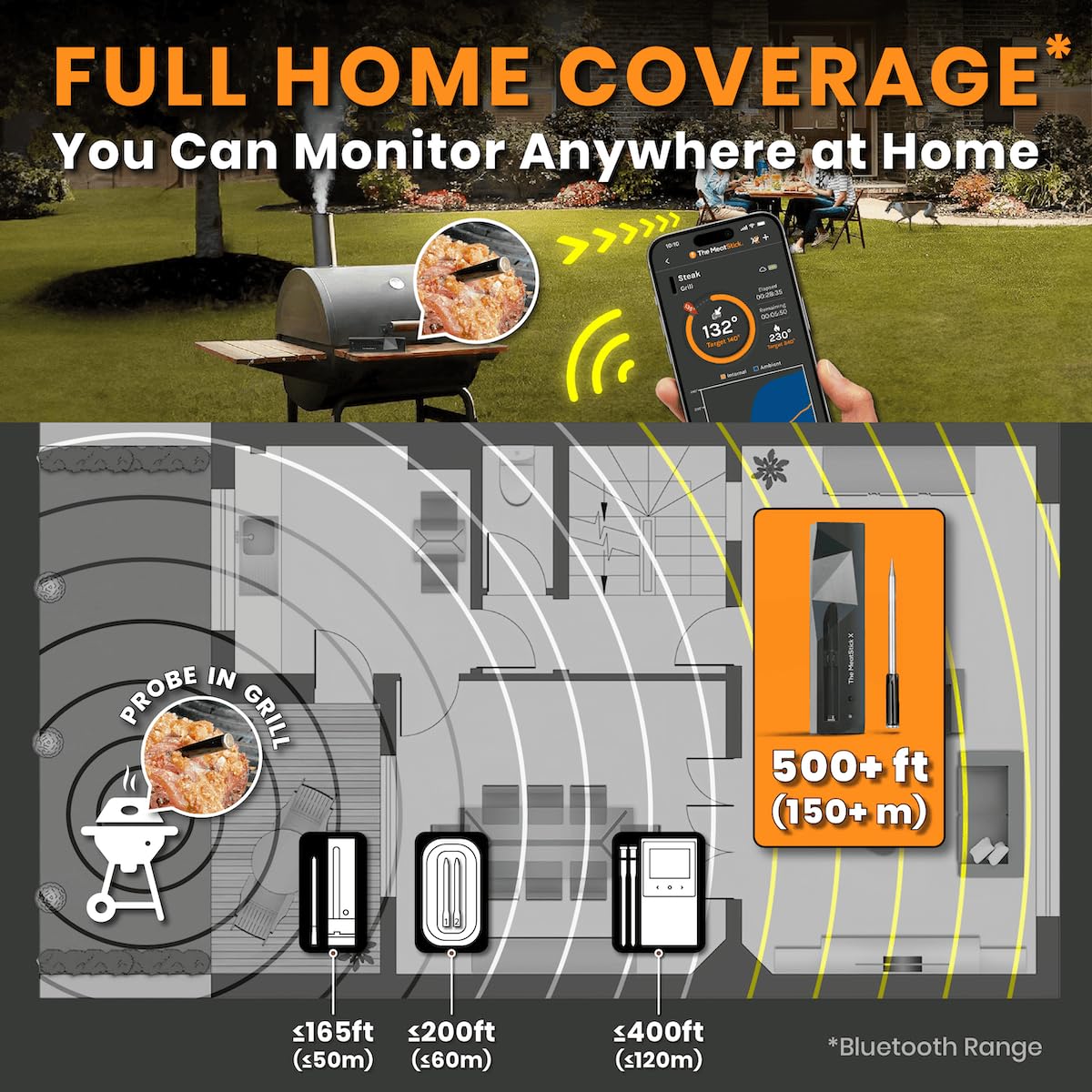 MeatStick X – Smart Wireless Meat Probe for Grilling, Smoking & BBQ | 500ft+ Bluetooth Range | Works in Oven, Smoker & Grill