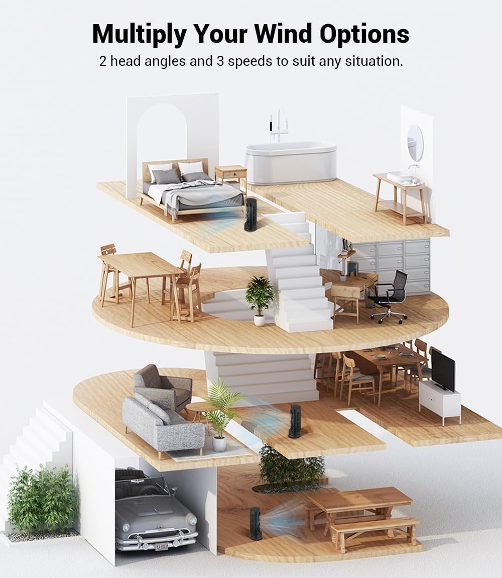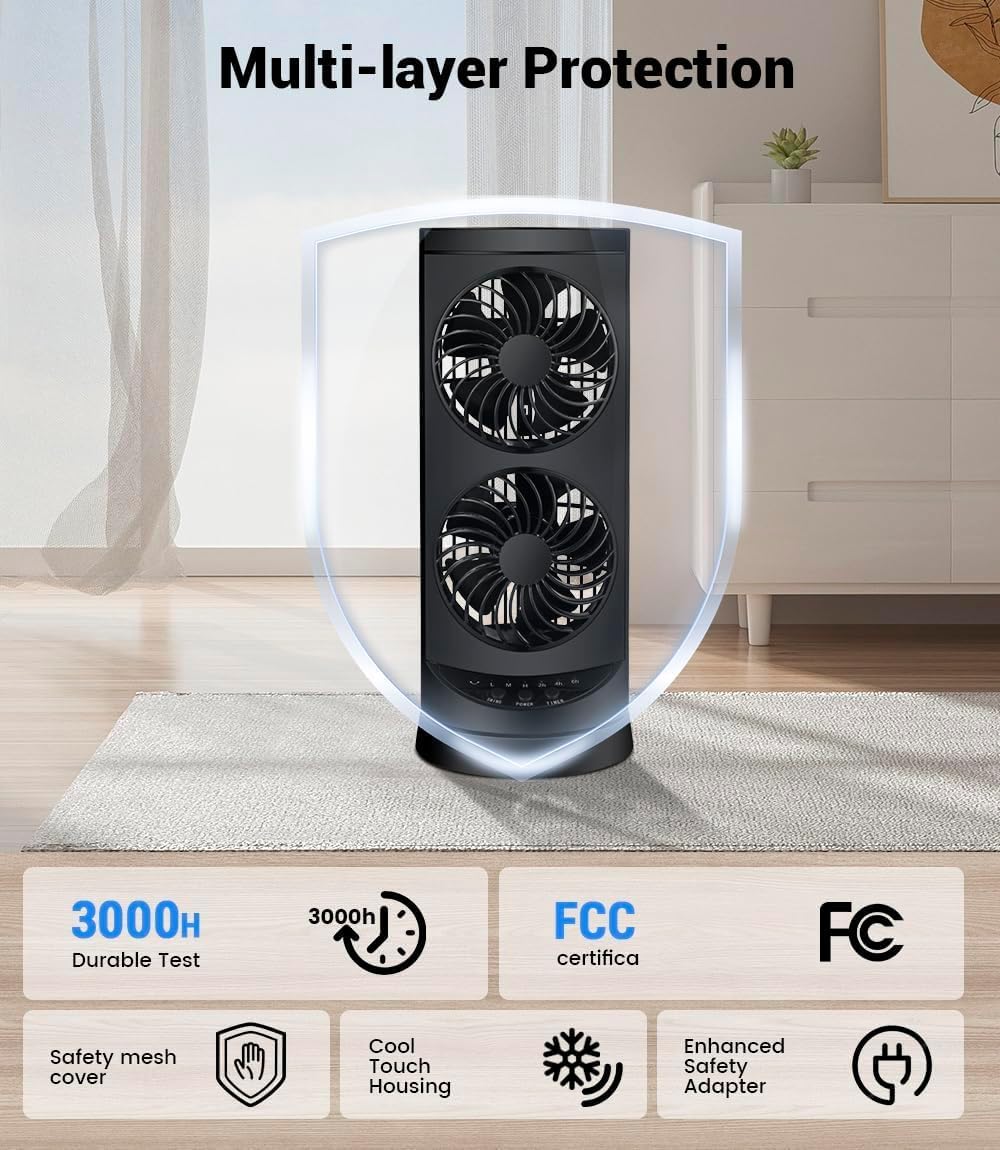Personal Tower Cooling Fans that Blow Cold Air, Standing Small Desk Fan with 3 Speeds & Timer, 60° & 110° Oscillating Table Fan, Quiet and Safe Electric Floor Fan for Bedroom, Bedside, Home, Office