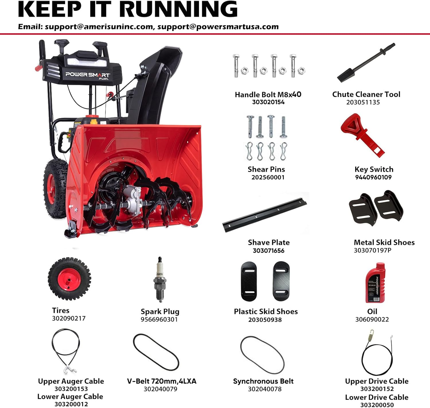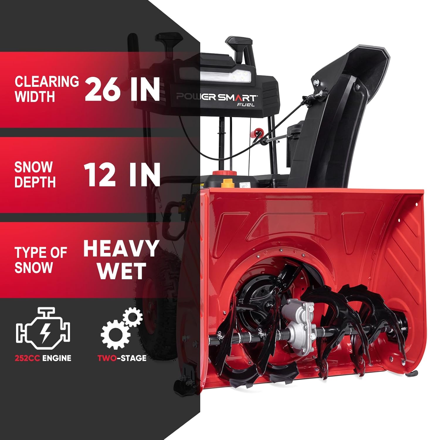 PowerSmart 26-Inch Snow Blower Gas Powered, 252cc 4-Cycle Engine with Electric Start, 2-Stage Self-Propelled with Headlight