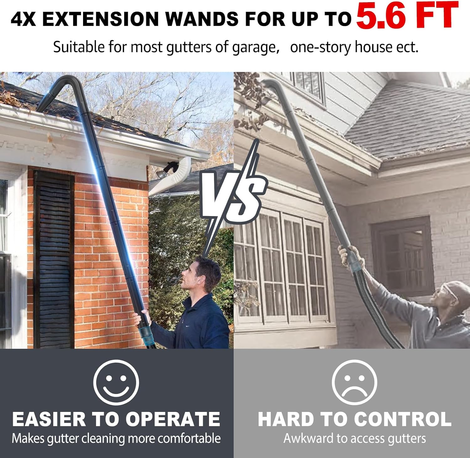 Sealegend Gutter Cleaning Tools for 2-1/2 in. Wet/Dry Vacuum Cleaner, Shop Vac Hose Attachments for Cleaning or Blowing Debris from Gutters Up to 5.6FT, Upgrade Lockout Design Shop Vac Accessories