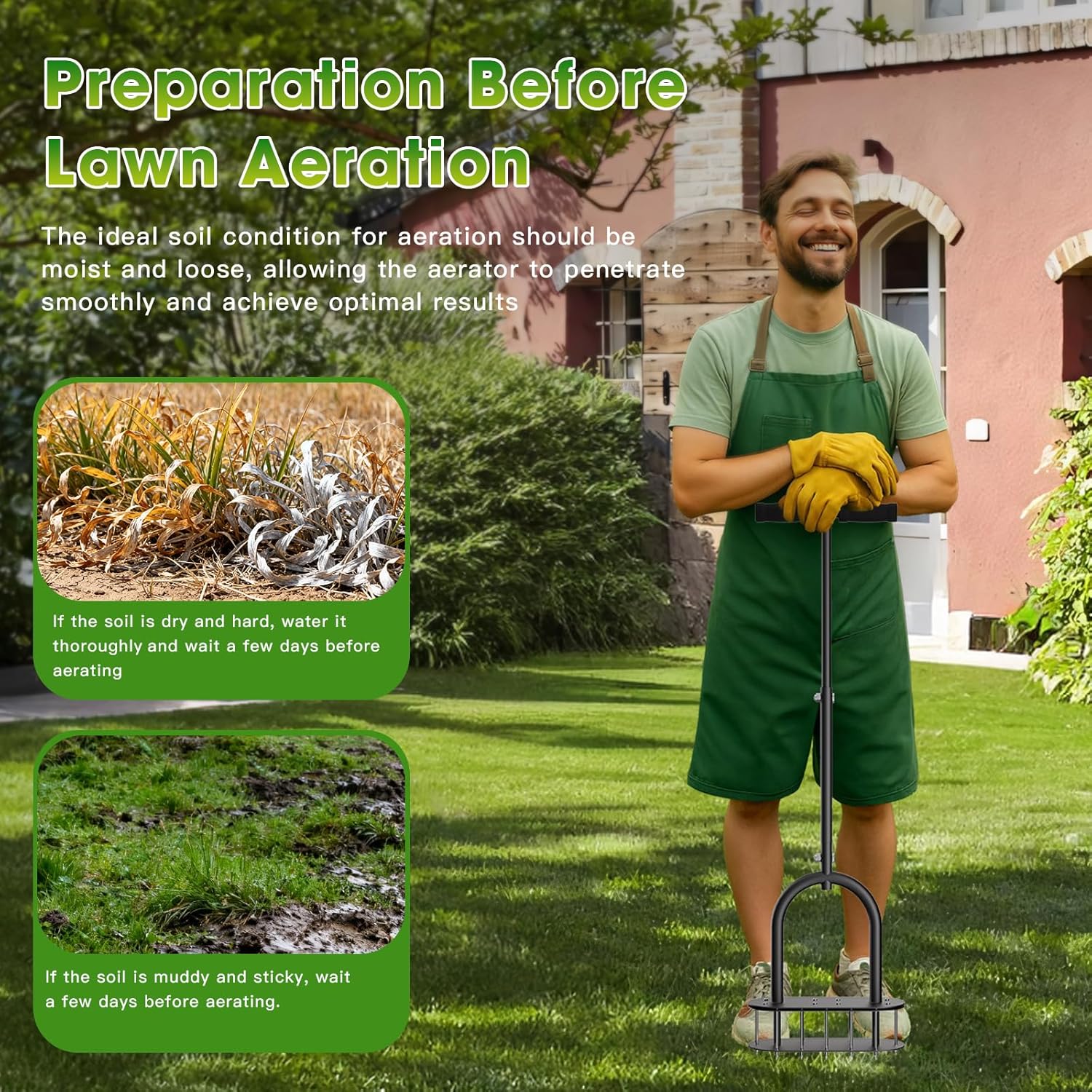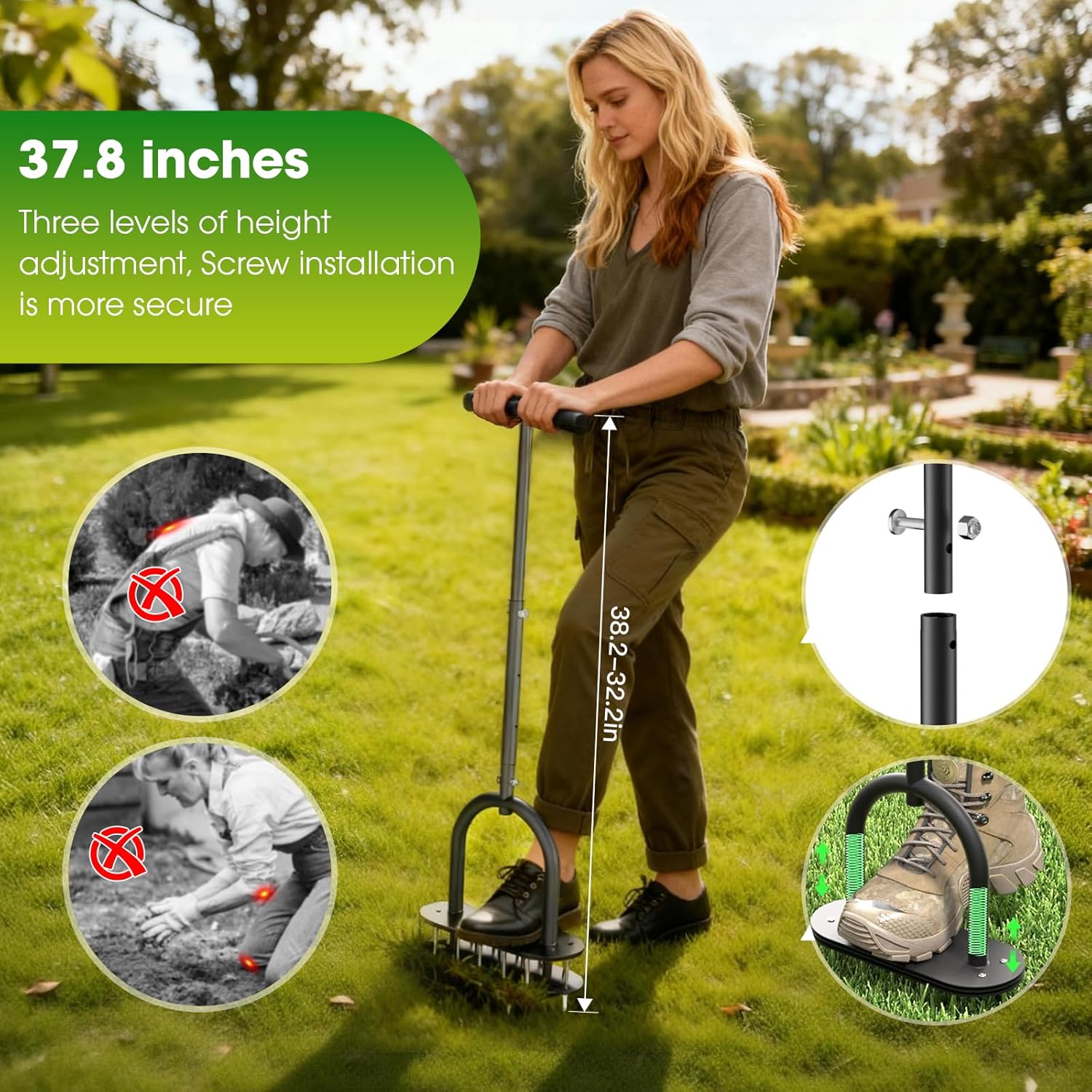 seasky Lawn Aerator, Manual Lawn Aerator Tool with Padded T-Handle, Wide Foot Plate & 15-3 Inch Solid Steel Spikes, Dual-Layer Design for Effortless Aeration in Lawn, Yard and Garden Soil