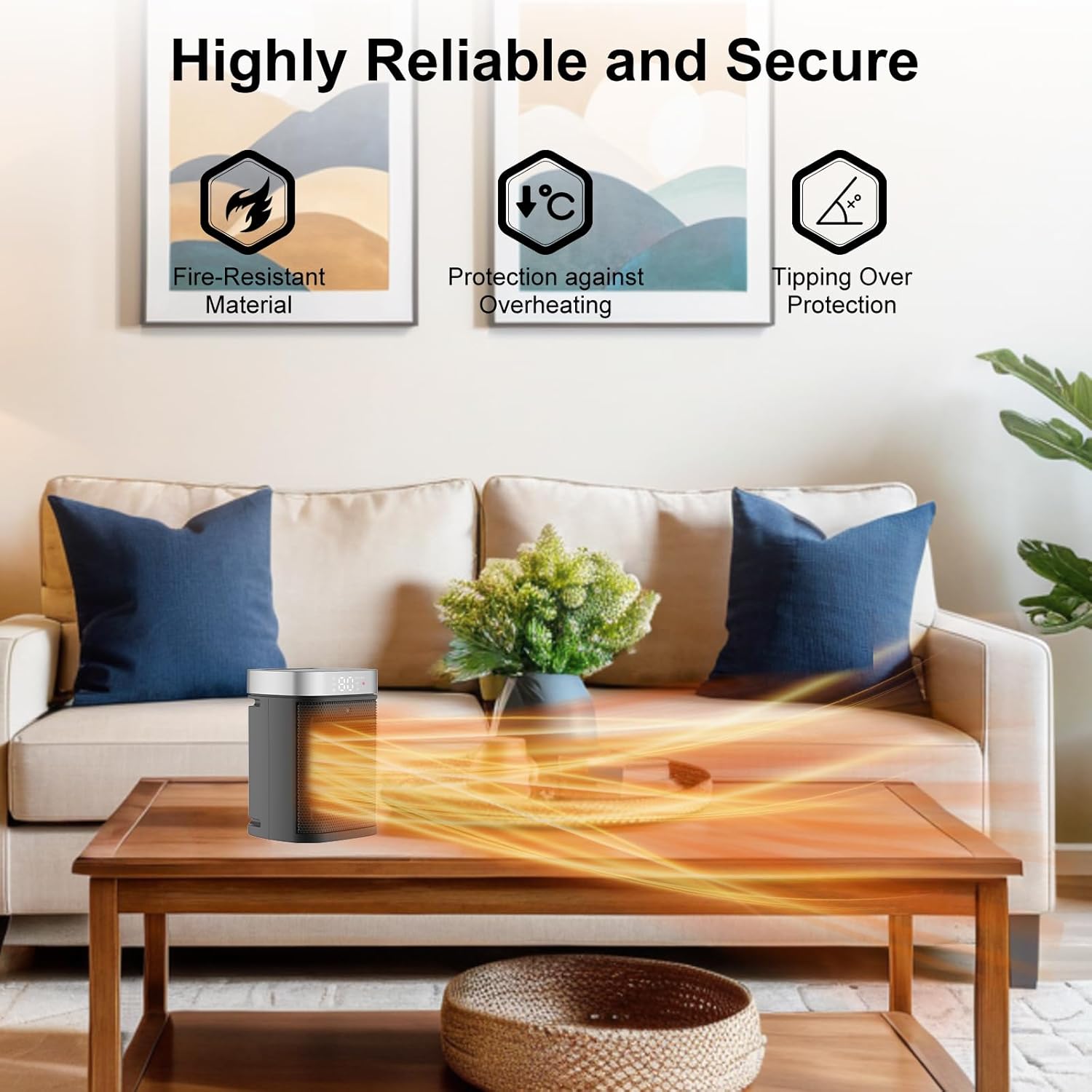 Small Portable Space Heater for Indoor Use – VOCRS 1500W PTC Electric Heater with Thermostat, Remote Control, 12H Timer, Eco and Fan Mode, Rapid and Safe Heating for Bedroom, Office