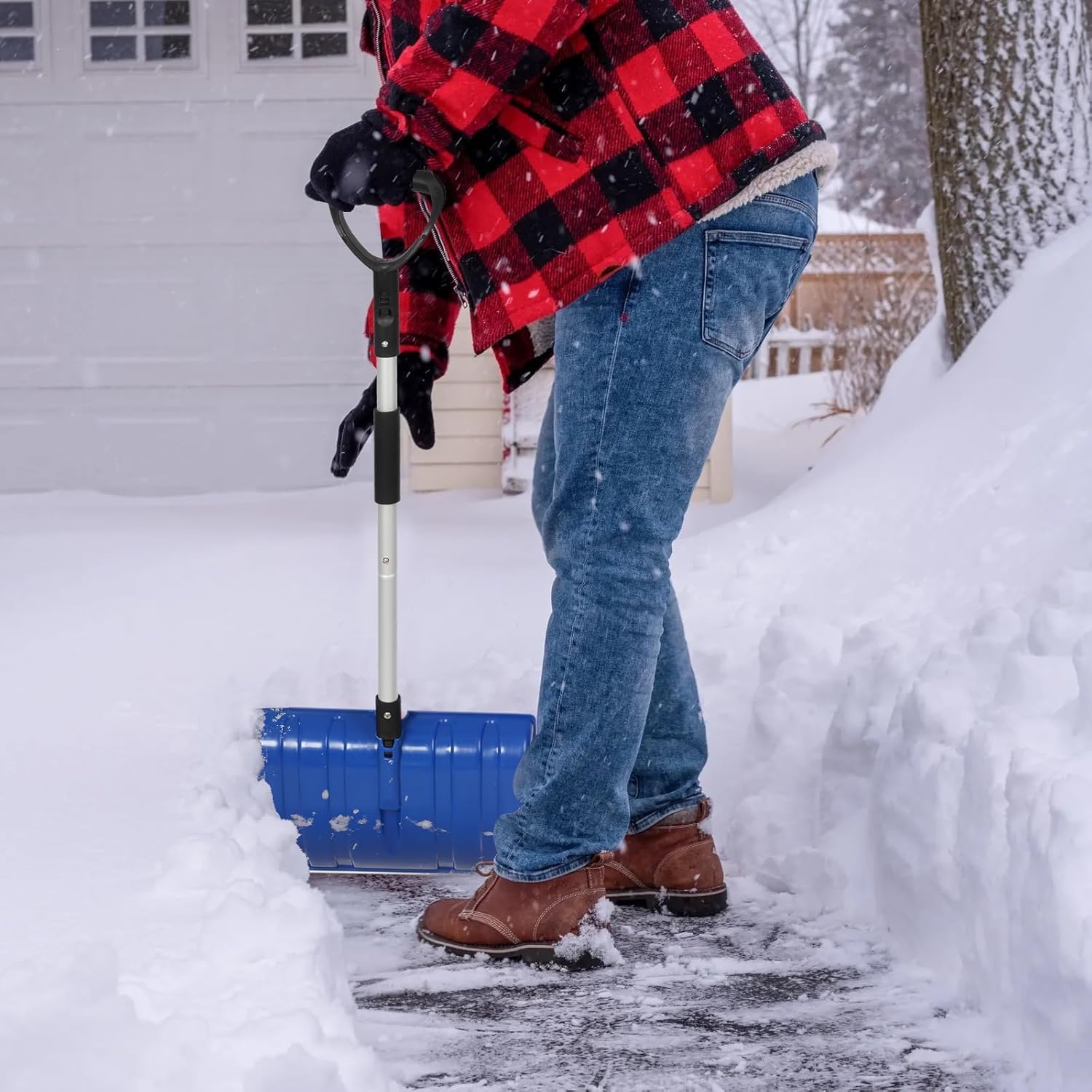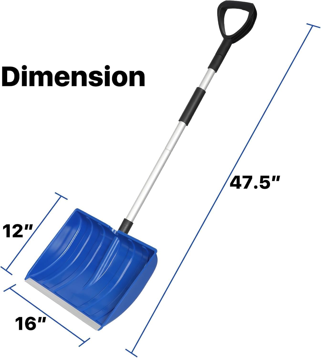 Snow Shovel, Snow Shovels for Driveway, Plastic Snow Shovels for Snow Removal with Aluminum Handle & D-Grip, 16″ Wide Shovel for Snow Heavy Duty, 47.5 inch