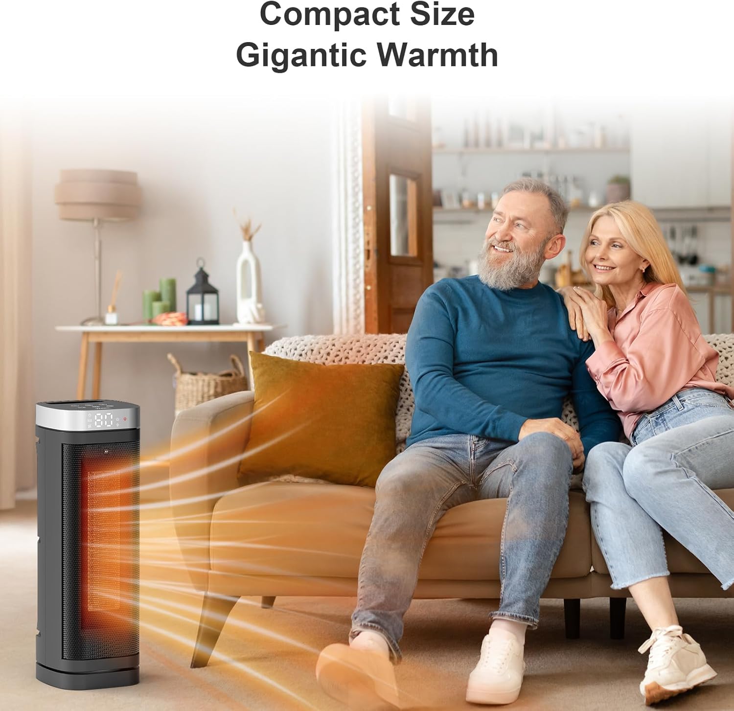 Space Heater, WINHL 17 Inches Electric Heaters for Indoor Use with Thermostat and Remote, 70°Oscillation, 12H Timer, 5 Modes, 1500W PTC Ceramic Fast Safety Heat for Office Bedroom Home