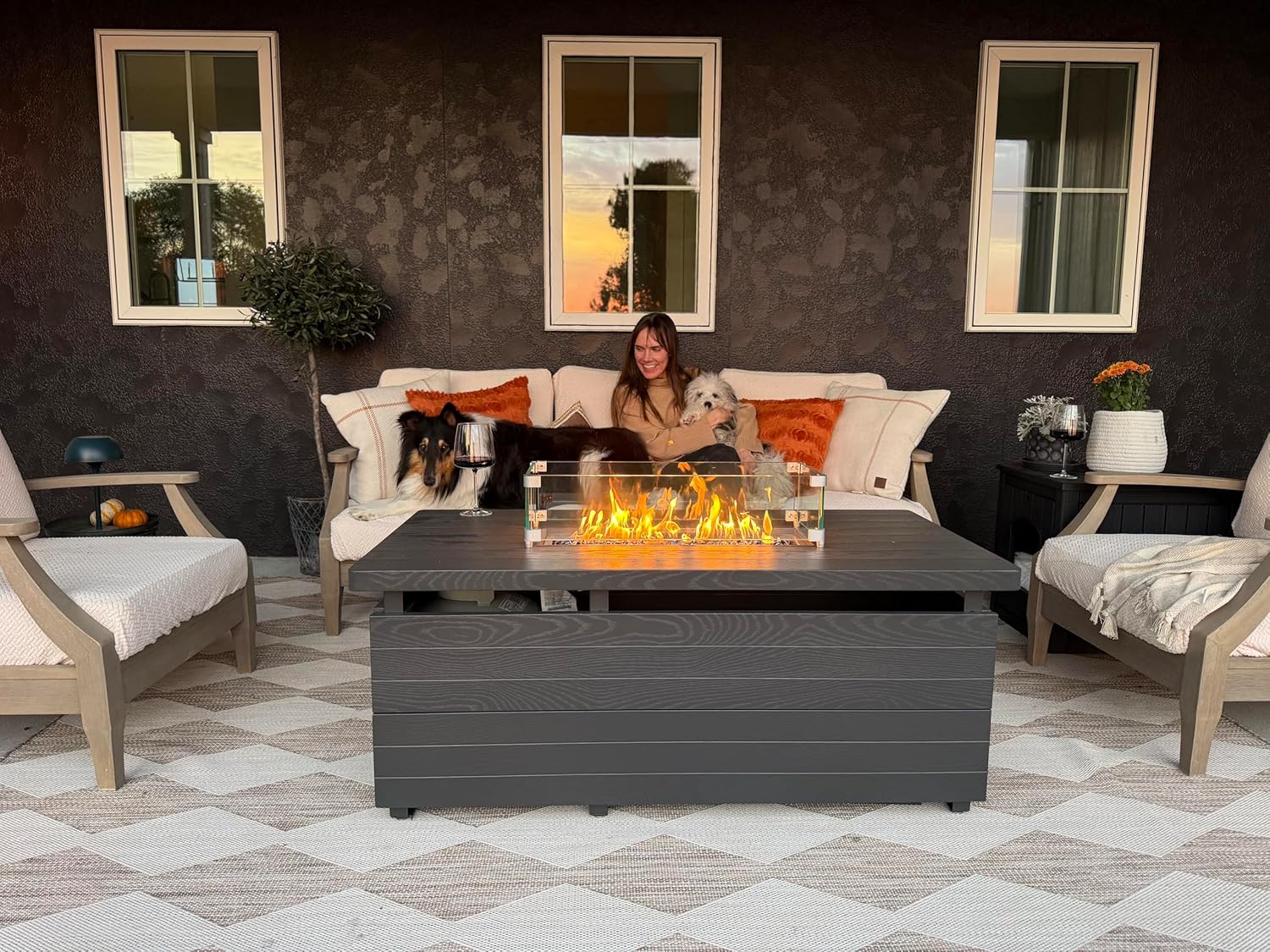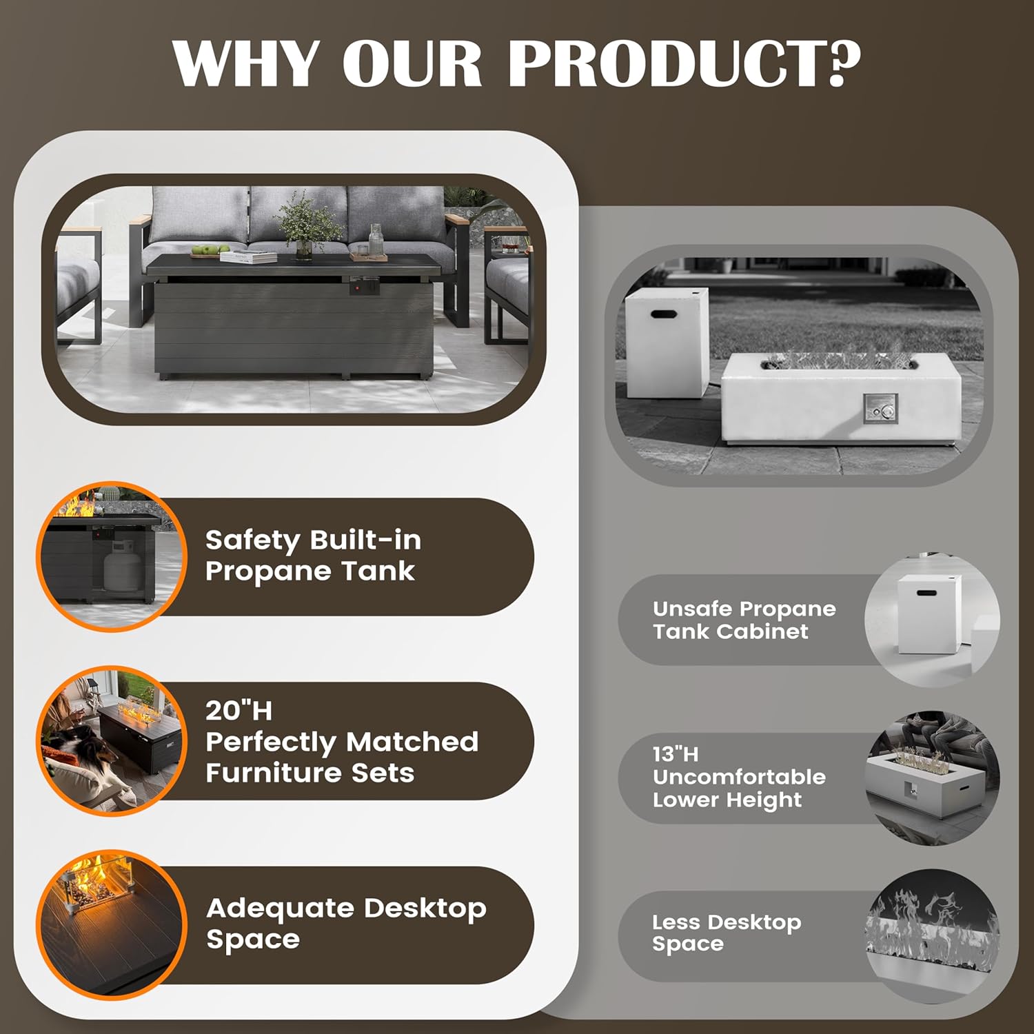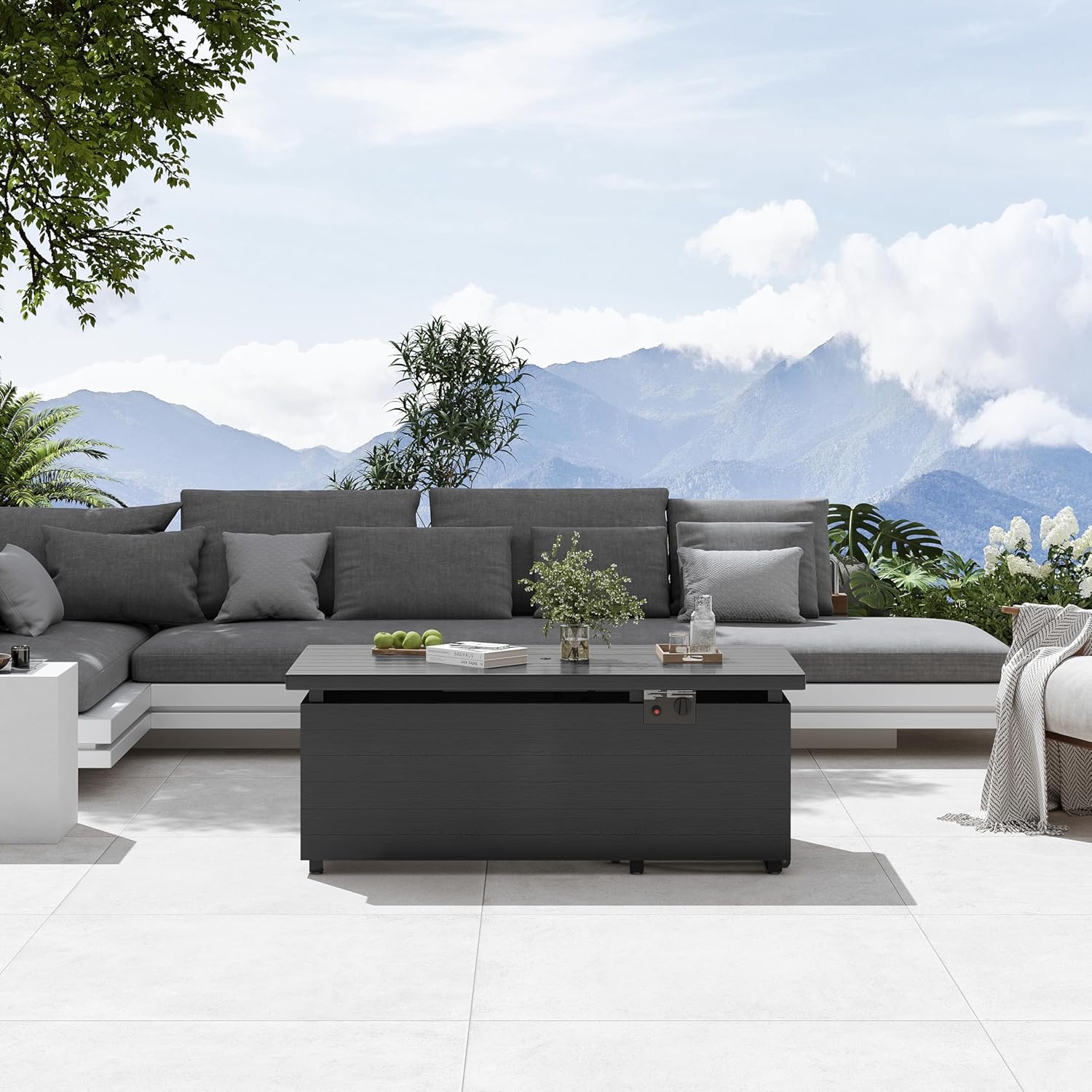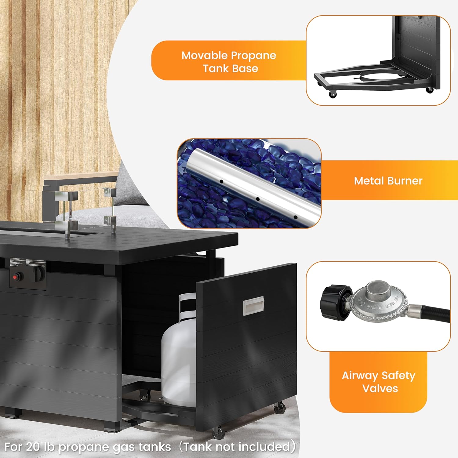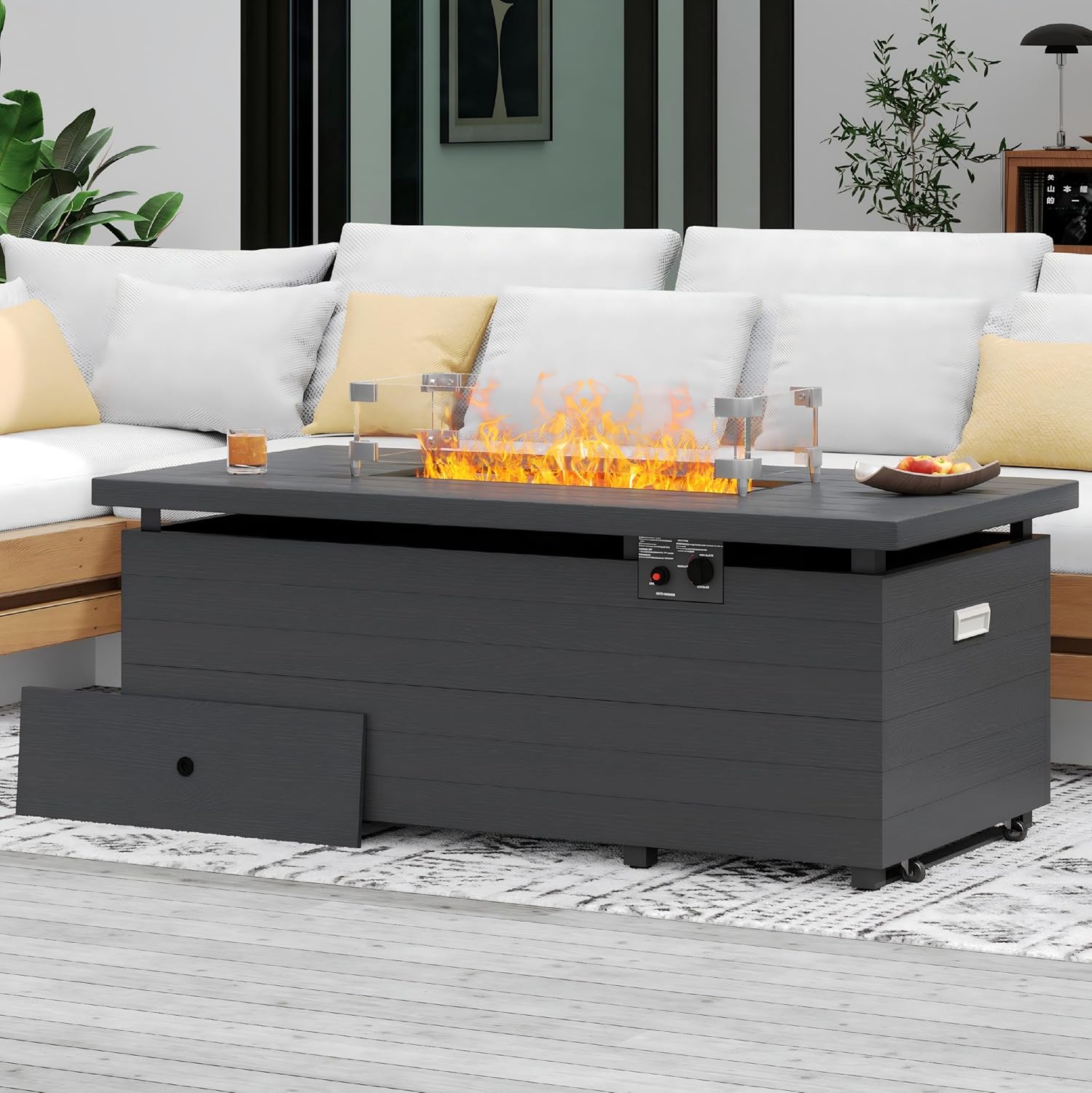 Sundale Outdoor 51 Inch Outdoor Fire Pit Table, 50,000BTU Rectangle Propane Fire Pit with Sliding Tank Holder, Glass Wind Guard, Removable Lid, CSA Certified, Gray